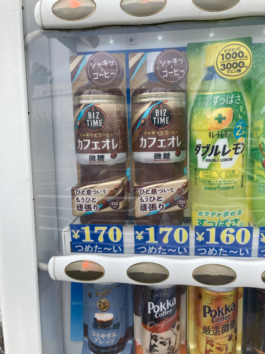 自販機で売っている「POPホワイトソーダ」や「BIZ TIMEカフェオレ」を見て、たまにはこんなのも飲んでみたいと思った。普段は無糖の飲料のことが圧倒的に多いので、たまに有糖のものを選ぶとものすごく甘く感じる。帰路で手を伸ばした「水ゼリー」もそうか。