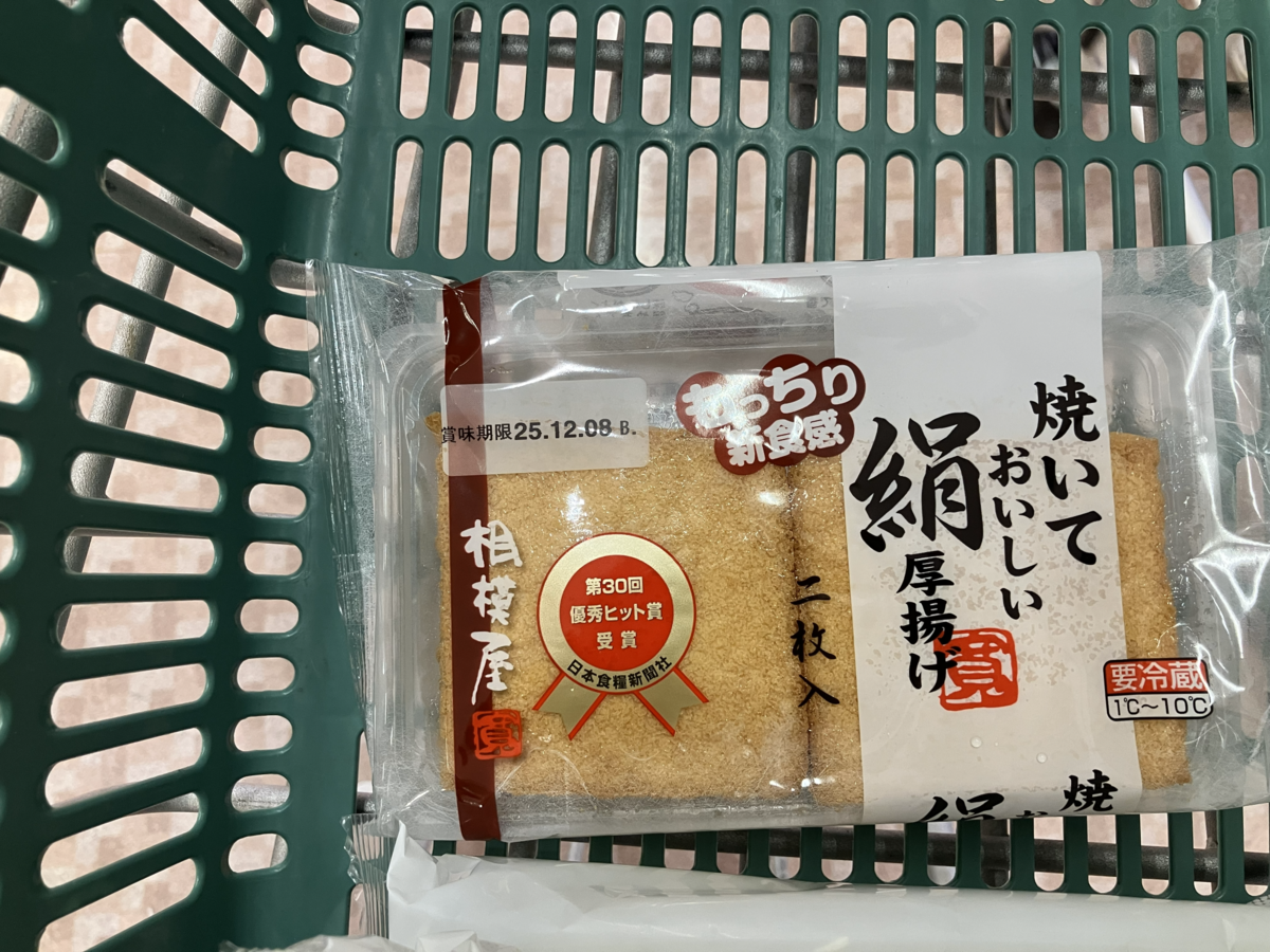焼いて美味しい絹厚あげ、購入。実家で食べて美味しかったのが、この商品でないかと思った。焼いて食べたのは翌日か翌々日だったと思うが、自分で焼いても美味しかった。